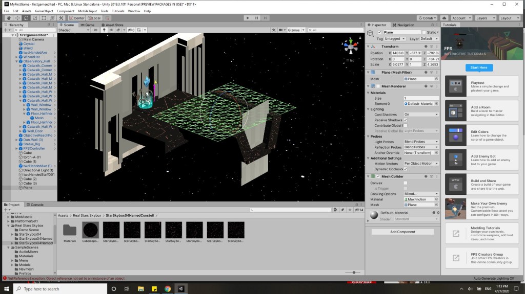 This Virtual world was made using Unity. I started making it by looking through the assets that were already downloaded, followed by me searching specific objects in the search menu and then downloading the assets that accompanied them. I then would continue my design of the world with the assets that came along with this and continue this cycle.